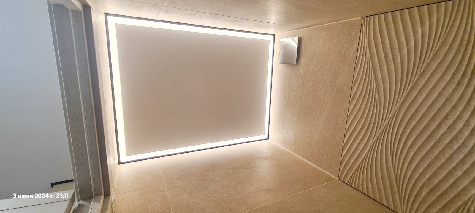 Этапы монтажа полотна со скрытой подсветкой: