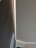 • Контурную светодиодную подсветку. Создаёт уютную атмосферу, эффект парения полотна за счёт размещения светодиодной ленты по периметру комнаты.