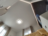 В квартире нужна была парящая конструкция с контурными потолками. «Седьмое небо» сделало все под ключ: от замера до установки. Учли особенности натяжного потолка, добавили подсветку по периметру. Комната преобразилась, световой потолок создает уют. Не жалеем о выборе!